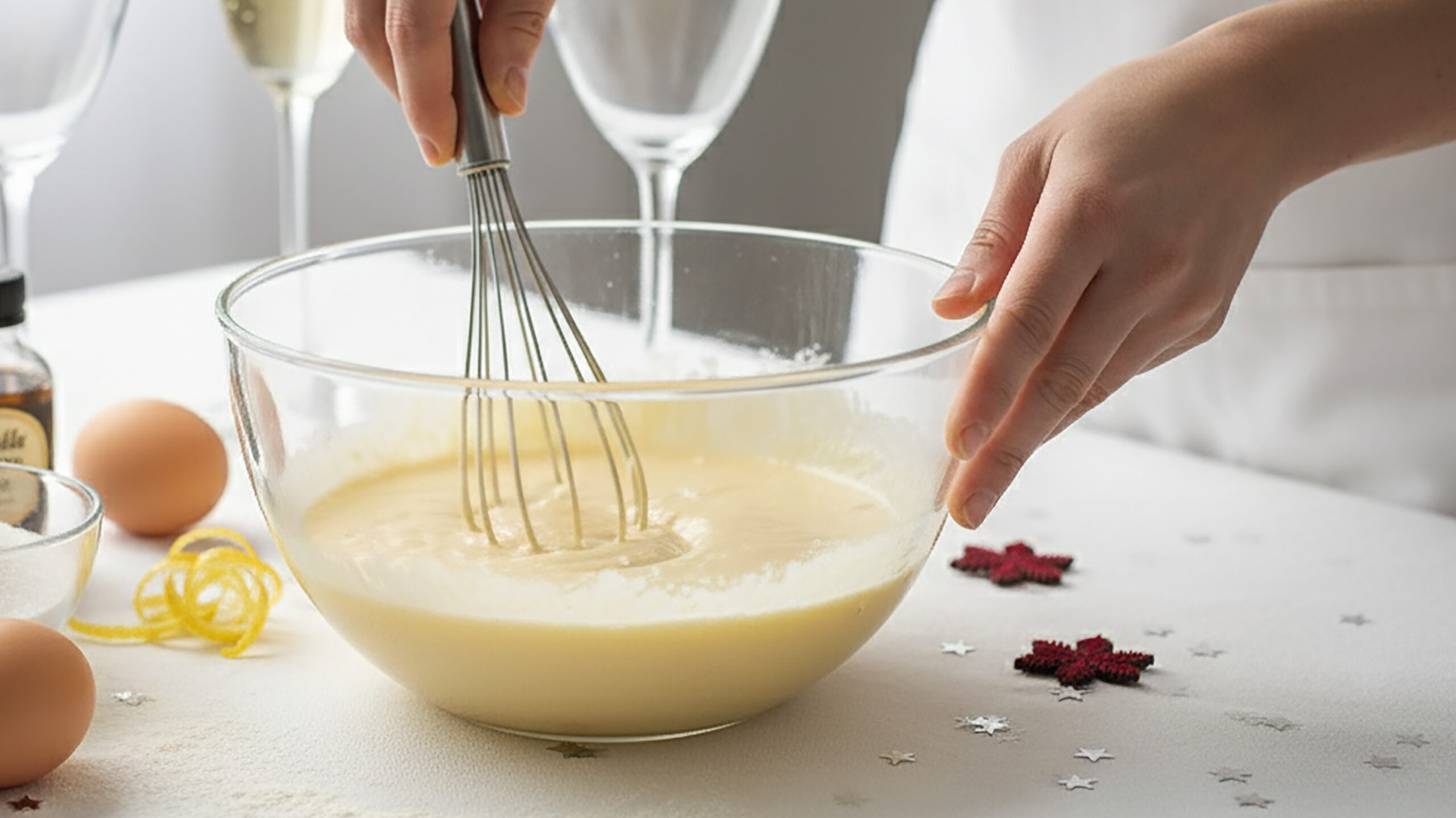 Mezclar la base: Licúa la Leche condensada Natulac, la leche entera, los huevos, la vainilla y el toque navideño (ralladura o nuez moscada)